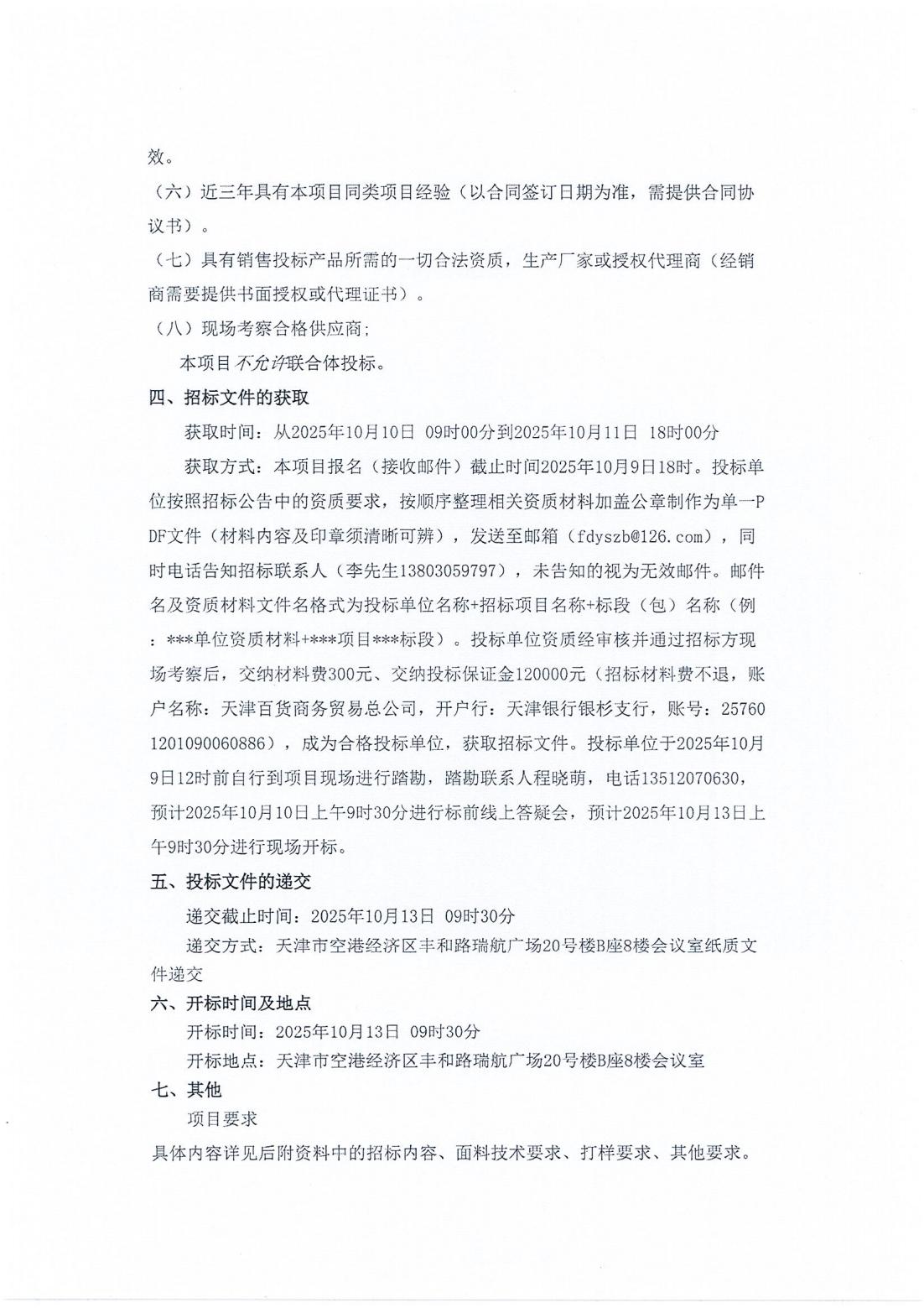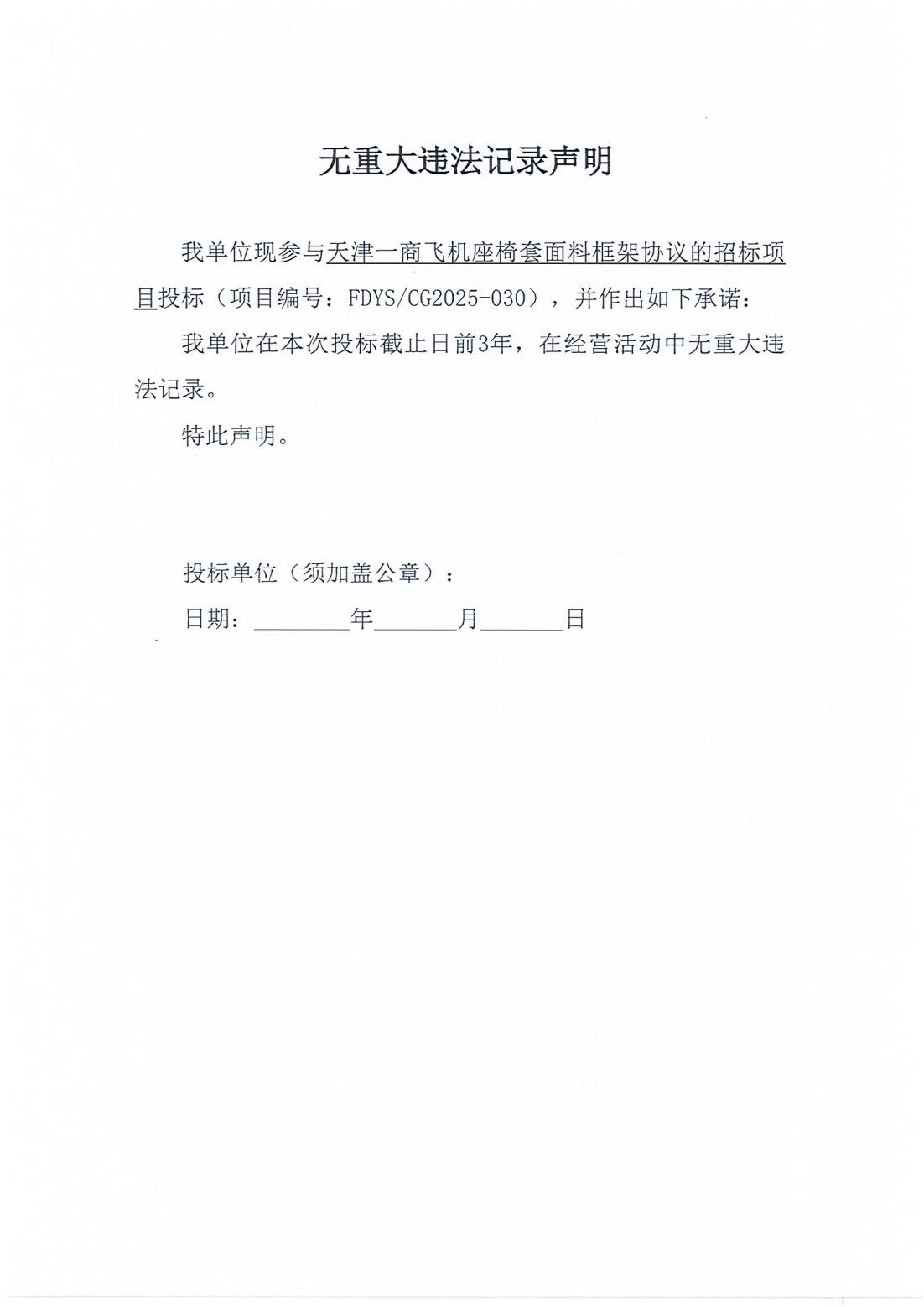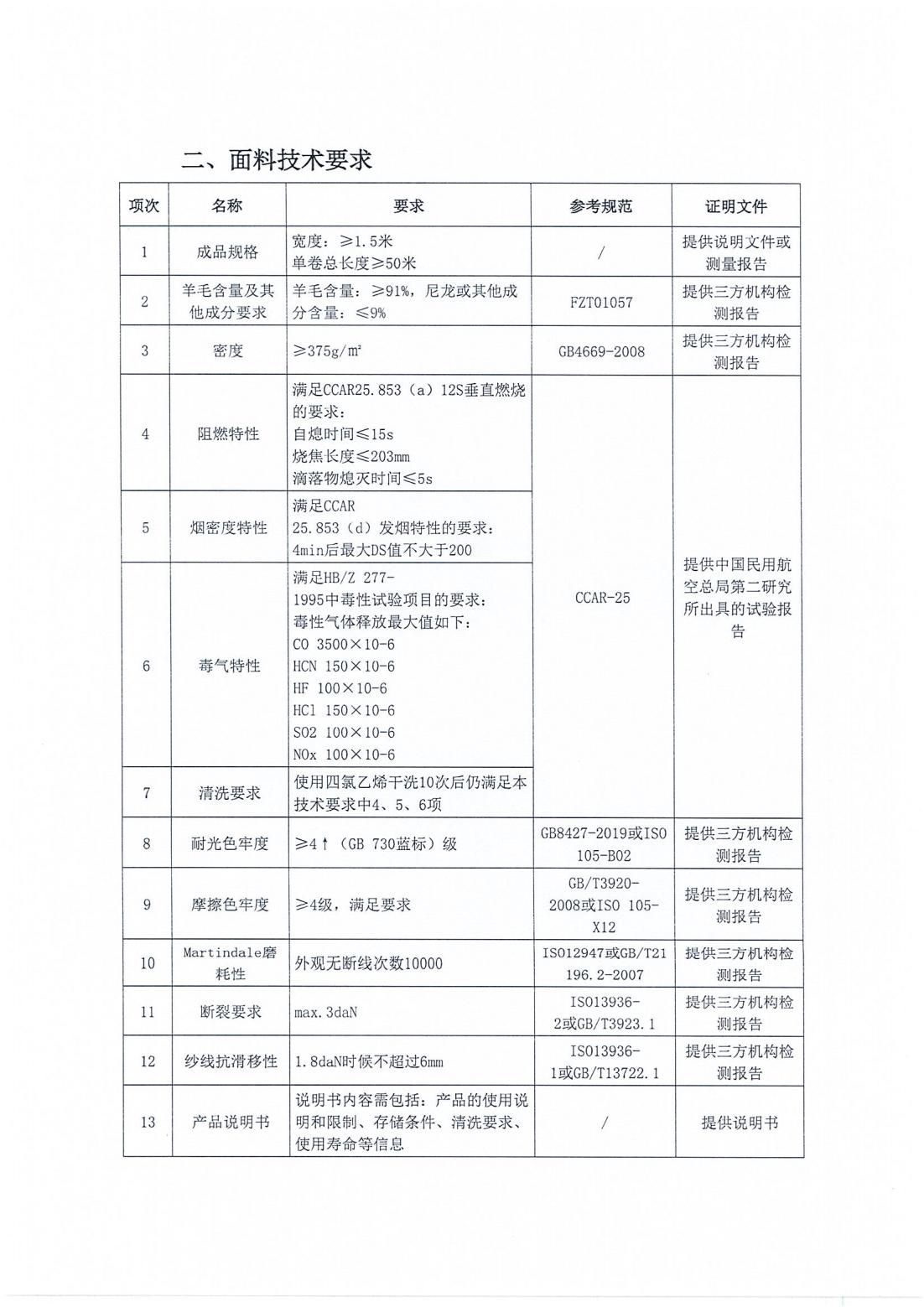 天津一商飞机座椅套面料框架协议的招标项目招标公告