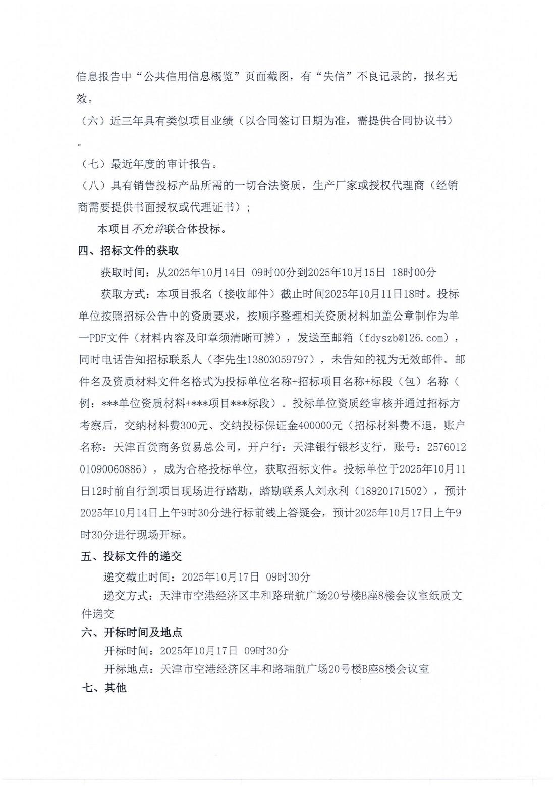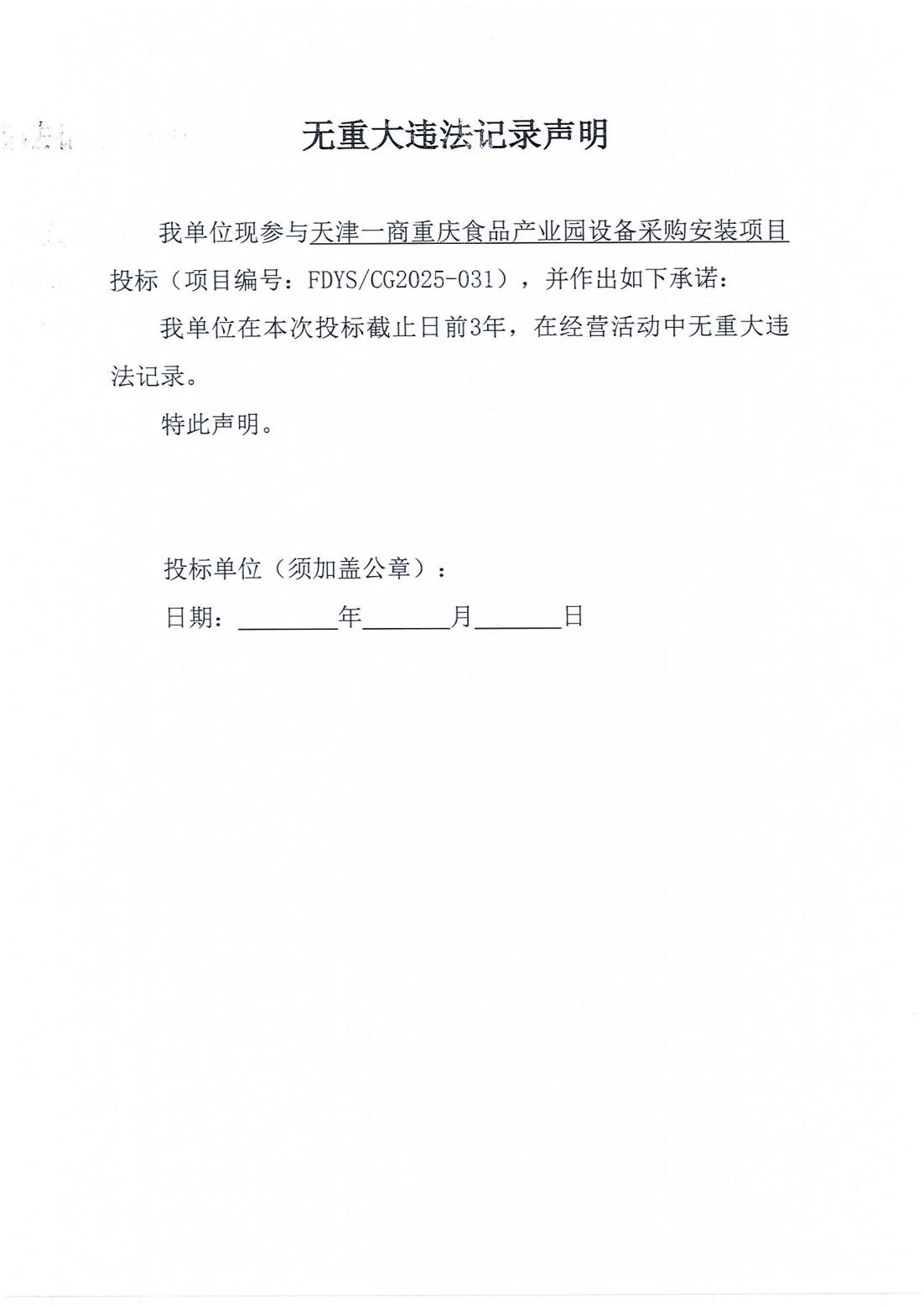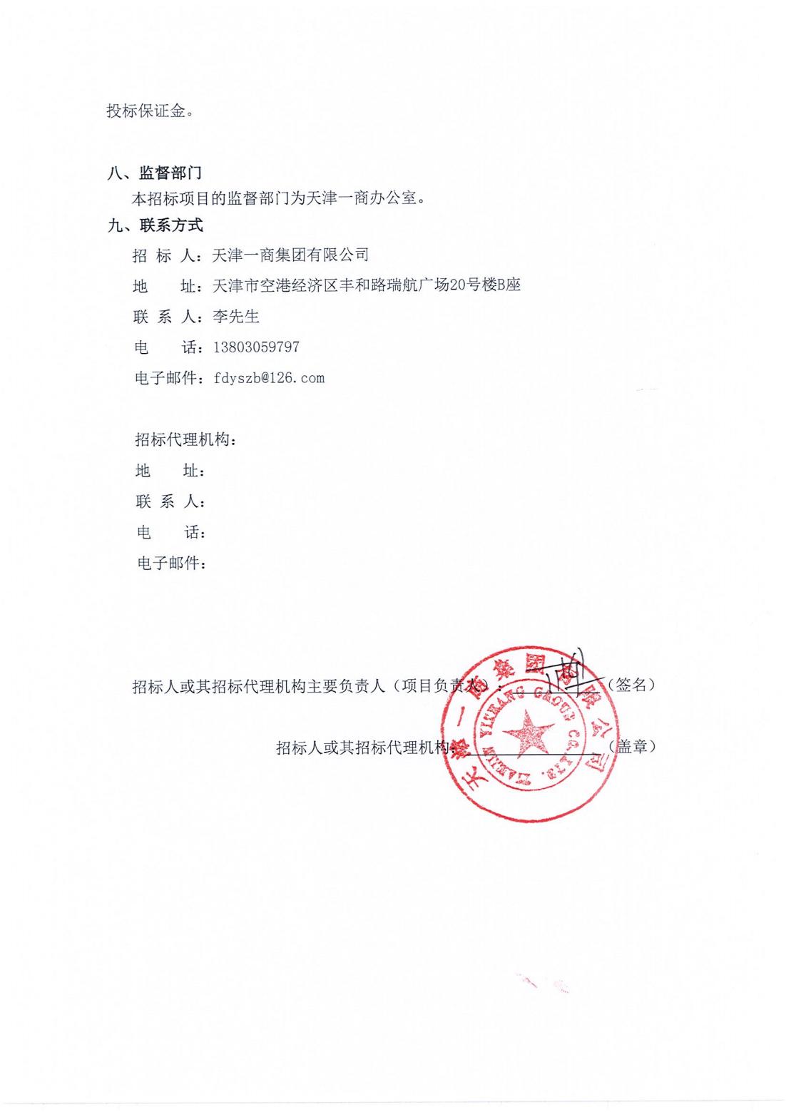 天津一商重庆食品产业园设备采购安装项目招标公告