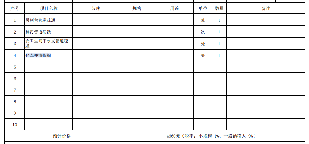 (一)项目名称:关于现代物流总公司军粮城清掏厕所招标项目。