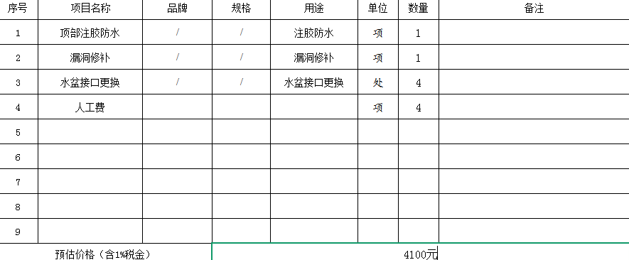 (一)项目名称:关于资产运营总公司南开茶城二楼西侧卫生间防水堵漏维修招标项目。