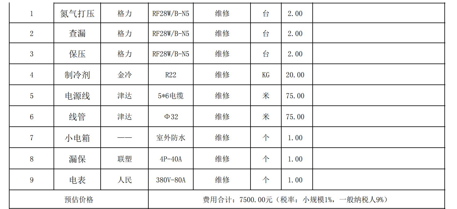 (一)项目名称:关于现代物流总公司西青保税仓10匹空调维修项目。