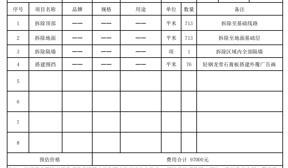 (一)项目名称:关于友谊新天地B区二层部分区域拆除及围挡搭建项目。