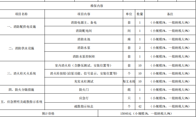 (一)项目名称:关于资产运营总公司6号院2025年建筑消防设施维护保养项目。