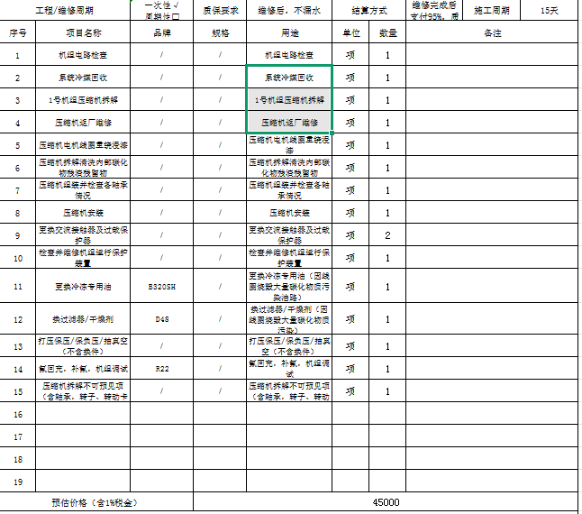 (一)项目名称:关于资产运营总公司南开茶城空调一号机组压缩机维修项目。
