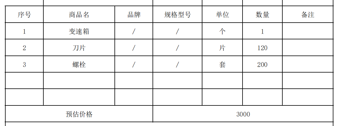 (一)项目名称:关于东丽储运中心采购履带式打草机等配件项目。