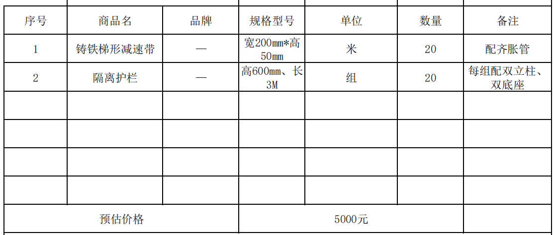 (一)项目名称:关于友谊武清百货采购减速带、隔离护栏项目。