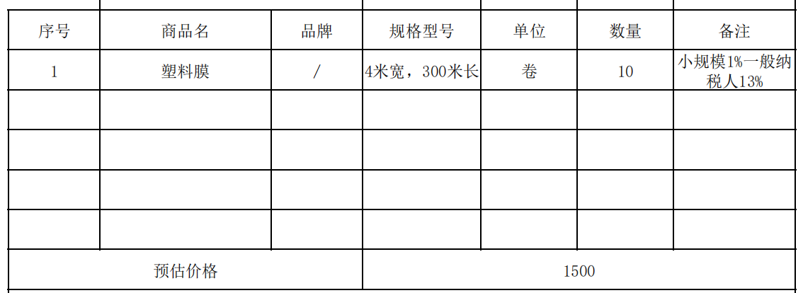 (一)项目名称:关于东丽储运中心采购货跺防尘塑料膜项目。