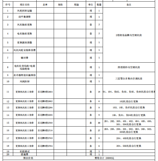 (一)项目名称:关于友谊新天地空调机房设备设施更换维修项目。
