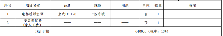 (一)项目名称:关于资产运营总公司解放南路家纺总汇加装电梯空调项目。