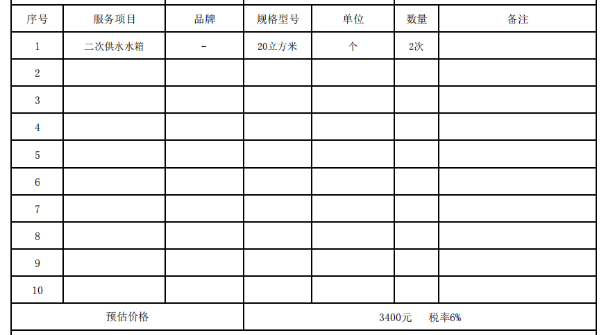 (一)项目名称:关于友谊新都百货所在泰鸿大厦6-9层二次供水水箱清洗项目。