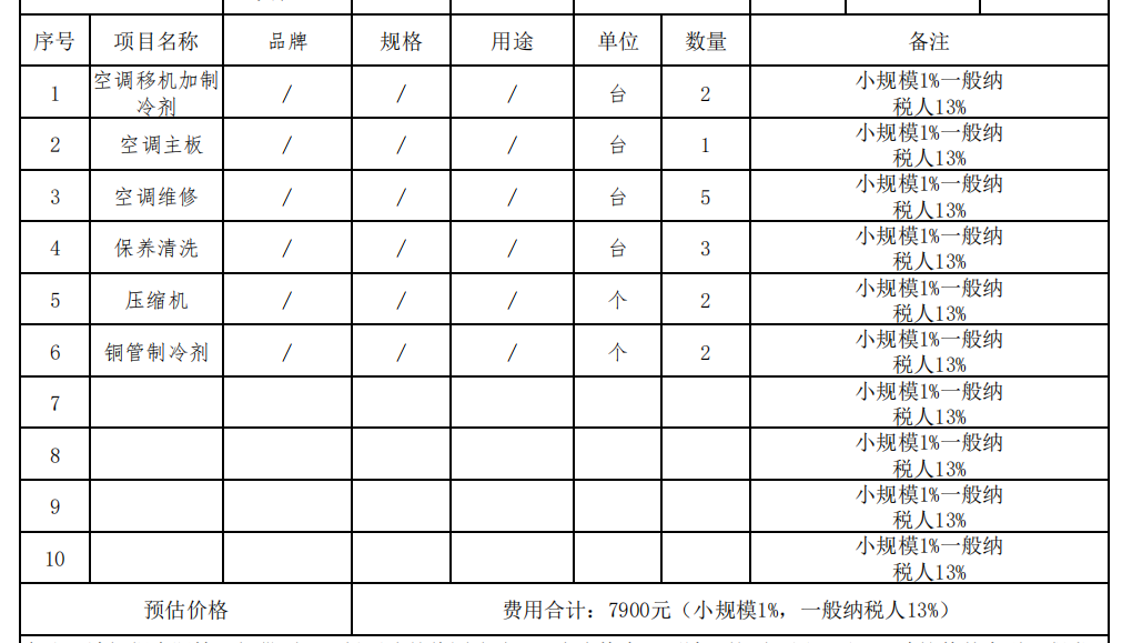 (一)项目名称:关于东丽储运中心在用空调移机、维修项目。