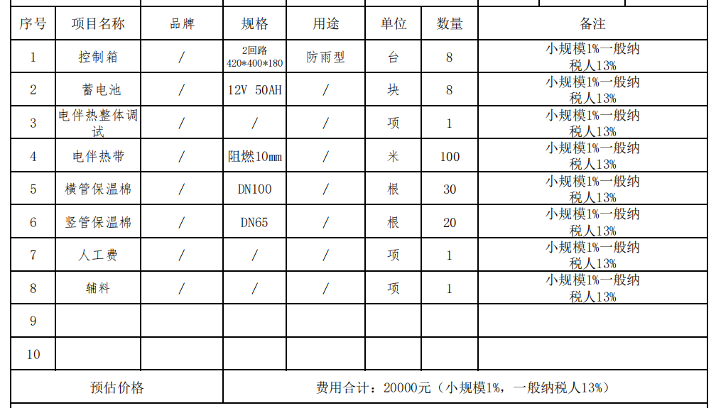 (一)项目名称:关于东丽储运中心电伴热控制箱更换及维修项目。