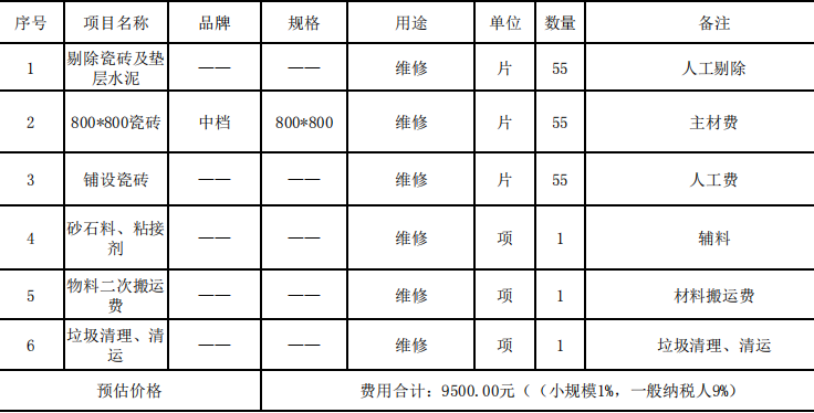 (一)项目名称:关于资产运营总公司河东茶城多处商铺及通道瓷砖维修项目。
