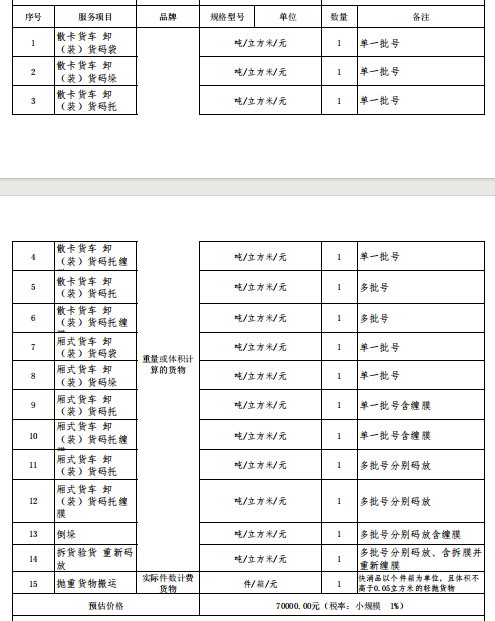 (一)项目名称:关于西青保税仓装卸服务项目。