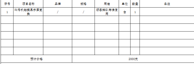 (一)项目名称:关于资产运营总公司滨海二手车市场维修叫号机项目。