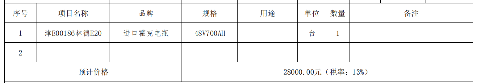 (一)项目名称:关于西青保税仓叉车更换电瓶项目。
