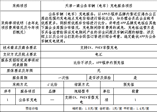 (一)项目名称:公务车辆(电车)充电服务项目