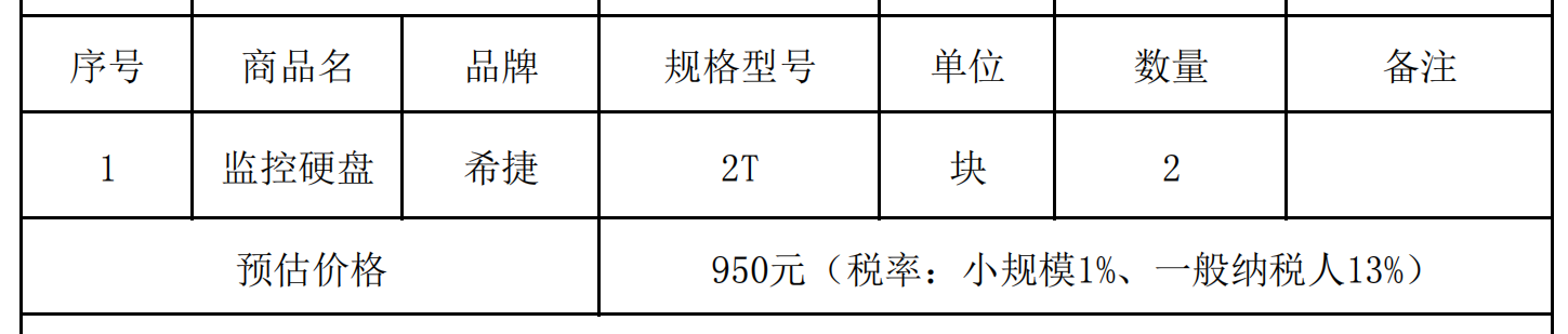 (一)项目名称:关于友谊大港百货档案室监控硬盘项目。
