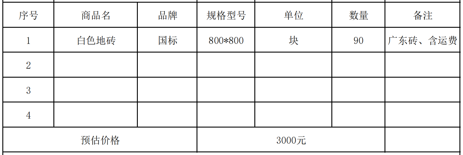 (一)项目名称:关于友谊武清百货采购商场地砖项目。