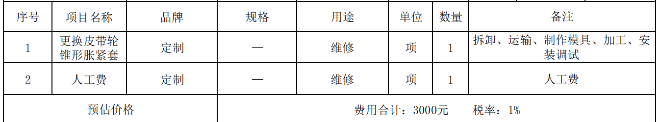 (一)项目名称:关于友谊新都百货二层中风机房皮带轮锥形胀紧套更换维修项目。
