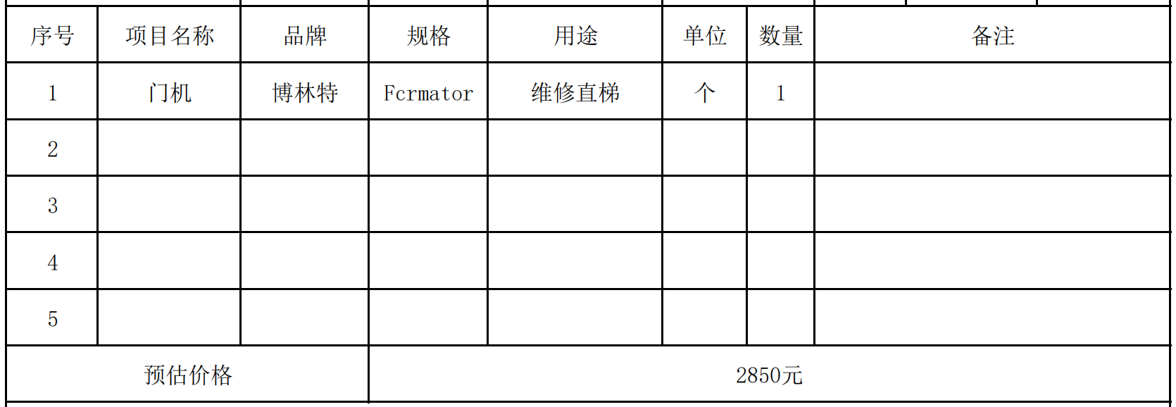 (一)项目名称:关于友谊武清百货维修直梯门机项目。