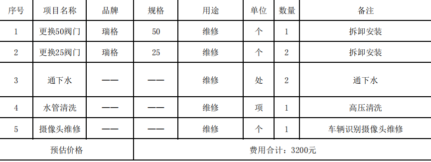 (一)项目名称:关于资产运营总公司南开茶城卫生间管道清洗,停车场摄像头维修项目。
