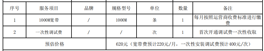 (一)项目名称:关于资产运营总公司6号院加装办公宽带项目。