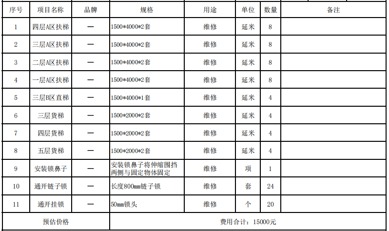 (一)项目名称:关于友谊新天地广场扶梯直梯处伸缩围栏安装项目。
