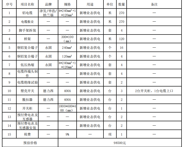 (一)项目名称:关于友谊武清百货电缆安装项目。