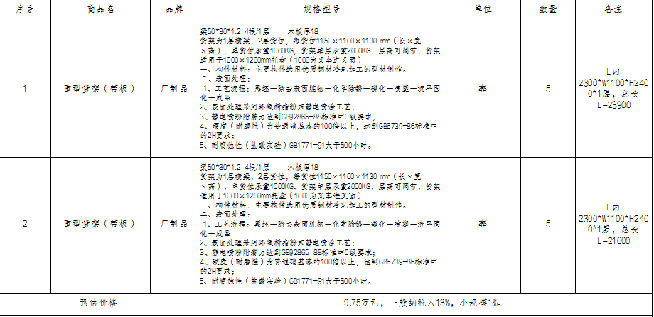 (一)项目名称:贸易二部西部航食重型货架采购及安装项目